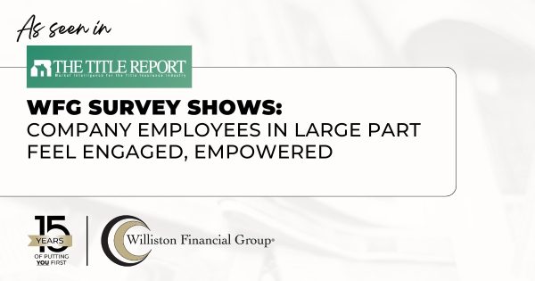 Williston Financial Group (WFG) is proud to share highlights from our 2025 Employee Engagement Survey, recently covered by The Title Report. The results underscore what WFG has long believed: when you invest in people, performance and customer experience follow. WFG’s Employee Experience Score rose from 34.4 to 42.4 year-over-year —…